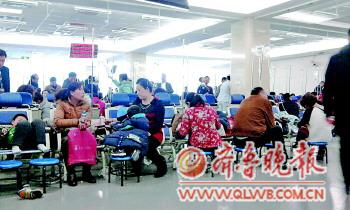 ◤青島婦兒醫院內輸液的患者。本報記者董海蕊攝