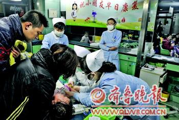 3月1日,濟南市中心醫院護士在為患兒打針。本報記者郭建政攝