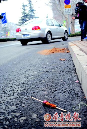 現(xiàn)場的血跡被交警用土掩蓋。見習(xí)記者劉帥攝