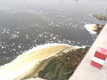 一股黑黃色污水流入了大清河。