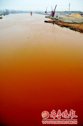 河水已經成了暗紅色。 本報記者 李巖松 攝