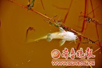 [提要] 河面上漂著死去的魚。本報濟寧3月9日訊(記者 姬生輝) 近日,貫穿嘉祥縣南北的主要河流之一洙水河突然“變臉”。原本清澈的河水,先是變黑,之后又變成暗紅、暗黃色,受波及河道達十余公里,河面上漂著死魚死蝦。