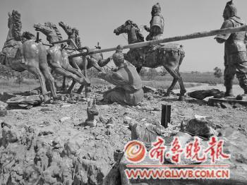 ▲“始皇東巡”群雕中的馬失前蹄、車夫墜地、始皇失蹤。