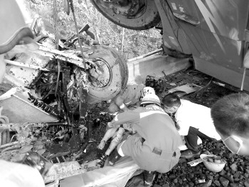 運(yùn)煤車撞斷小貨車 事發(fā)京福高速濟(jì)南彭莊附近