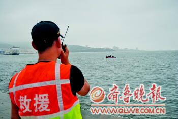 ◥搜救隊(duì)員隨時(shí)與岸上指揮人員聯(lián)系。本報(bào)記者呂修全攝