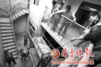 解散前,“暖心”的志愿者在幫濟寧啟音聾啞康復學校的孩子們搬家。 本報記者 張曉科 攝