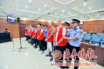 犯罪團(tuán)伙成員在接受審判。 本報(bào)通訊員 孫康 攝
