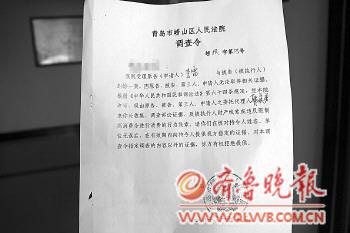 ▲青島嶗山區法院簽發的調查令。本報見習記者周衍鵬攝