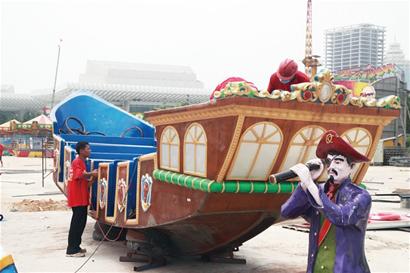 [提要] 海盜船已動工安裝,10天左右就能完工。每年青島國際啤酒節最驚險、最刺激、最瘋狂的地方莫過于嘉年華了。到啤酒節嘉年華游玩,一定要去坐坐加勒比海盜船,仿照十八世紀海盜船建造,氣勢雄偉、壯觀,融驚險性與趣味性為一體。