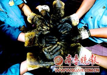 ◤臟得已經看不出樣子的手套,一個星期就能磨爛一雙。