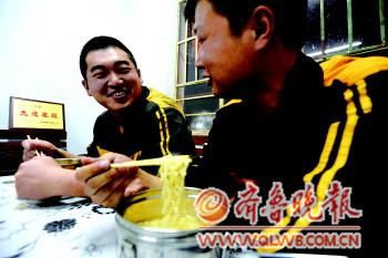 ◤下半夜,工人們工作間隙常常會加個餐,泡一包方便面。