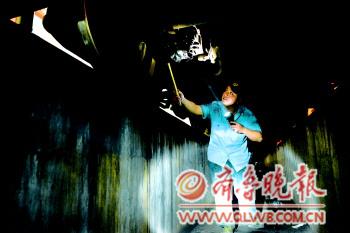 ◤靠著手電,一名工人熟練地做著檢修。