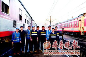 “十一”期間,火車載客量大、列車臨客也多,一個班十幾位檢修工一天要檢修約16輛列車。每輛列車他們都要在一個小時內檢修完。