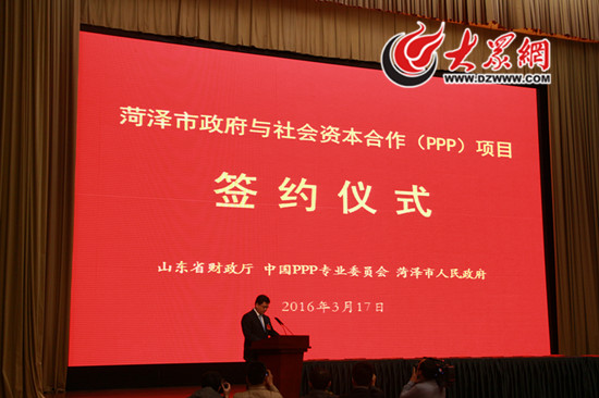 菏澤市委書記孫愛軍介紹,推廣應用PPP模式,對吸引社會資本,拓寬融資渠道,提升多元化和可持續的投入機制,提高公共產品和公共服務,促進經濟社會持續健康發展具有重要意義。去年以來,菏澤市將推廣運用PPP模式作為深化財稅體制改革的重要工作來抓,不斷健全組織管理、完善制度體系、加強扶持力度、強化培訓宣傳,各縣區也積極行動、主動作為。當前,菏澤發展已站在了加速膨脹與轉型升級交互疊加、協同并進的新的歷史起點上,具備乘勢而上、跨越趕超的良好條件。隨著新一輪發展布局的全面展開,在基礎設施建設及公共服務供給方面,需要大量的資金投入,PPP模式應用在菏澤前景十分廣闊,必將吸引更多的投資者來菏澤合作洽談、投資興業。