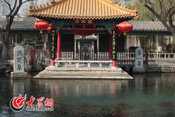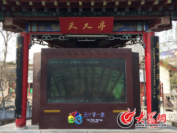 17日下午,趵突泉天尺亭顯示的實時水位為27.66米,逼近27.60米紅色警戒線。記者 王長坤 攝