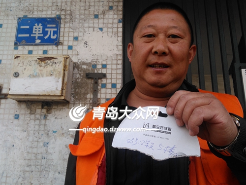 志愿服務隊員辛悅鋼展示居民求助的小紙條。