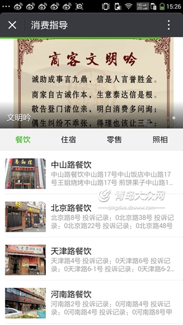 中山路工商所微信公眾號“中山惠民”里的商家信息一目了然。