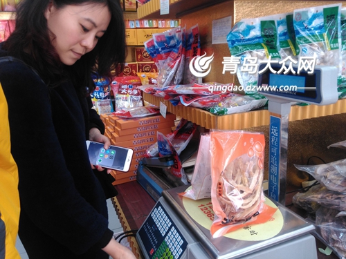 中山路海豐達店老板李鳳在遠程可追溯電子秤上稱重。高忠業(yè)攝