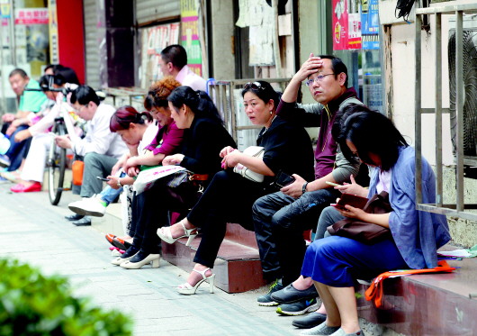 中考首日,15中考點附近,陪考的家長在考場外等待。本報記者 高緒亮 攝