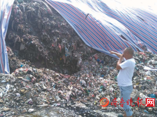 記者看到,山儼然成為一座垃圾山,山上有一片空地,垃圾高高堆起,長數百米,七八米高。成堆的垃圾被一塊塊塑料布遮蓋起來。走近垃圾堆記者看到,全是生活垃圾,混雜著廢棄塑料袋、爛衣服、磚石碎塊等。