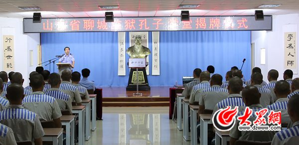 大眾網聊城7月22日訊記者 李長振 通訊員 張燕 劉軍)7月22日上午,聊城監獄舉行“孔子學堂”揭牌儀式。中國孔子基金會副理事長邢成湖、山東省監獄管理局副局長林國軍出席揭牌儀式并講話。聊城監獄部分警察及服刑人員參加了揭牌儀式。