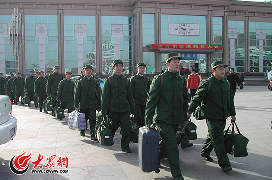 2004年12月16日,張楠應征入伍從臨沂站下車(前排左一)。 武警山東總隊供圖