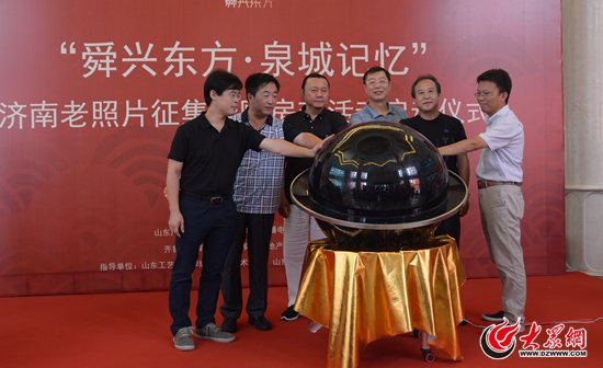 現場嘉賓按動啟動球,泉城記憶濟南老照片征集活動正式啟動。