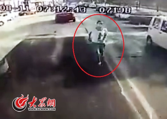 而就在事發前不到5分鐘,顧某某還曾在事發點以北約50米的地方險些被一輛出租車撞倒。路邊一家商戶的監控視頻顯示,當時她在西濼河路西側跑著橫穿馬路,似乎沒有注意到一輛正常行駛的出租車。就在快要撞上時,出租車急剎車停下,顧某某扶在了出租車前引擎蓋上。