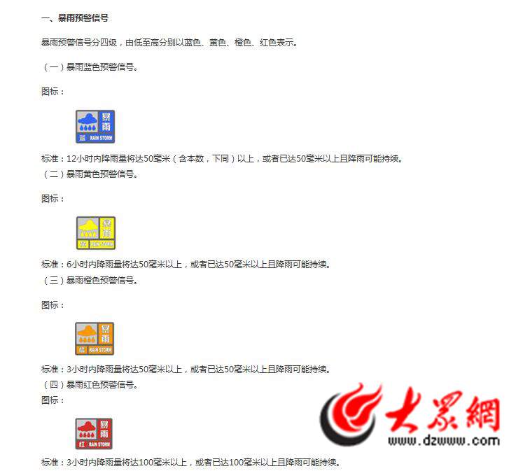 濟(jì)南市暴雨預(yù)警信號(hào)分4級(jí)。