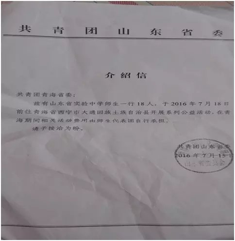 濟南市經七路73號是哪里?問這一句話,很多人可能不知道,但是如果說山東省實驗中學估計濟南人都知道吧。是的,經七路73號就是這個朱紅色大門的所在地,是濟南所有學子小學、初中向往的地方,是所有畢業的實驗學子最懷念和引以為豪的地方。在這個暑假,我們鼓起我們的勇氣,背起我們的信仰,一行15人踏上了去青海進行公益的活動。我們的學生把我們的活動命名為“73號西部公益行”,孩子們說:不要用班級命名,老師,希望以后更多的實驗人可以去祖國的西部幫助更多需要幫助的人。雖然我的孩子9歲,班里的孩子15、16歲,但是相信我們都會克服高原反應,實在不行受不了的就回來。國家,國家,有國才有家。我們愿意奉獻我們的一己之力,去改變一些什么。