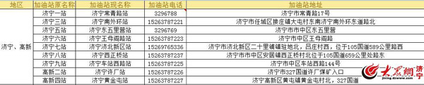 中石油加油站在濟寧市城區的分布情況
