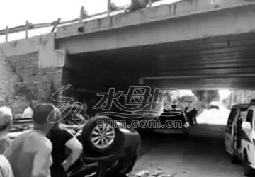上午10時許,記者途經榮烏高速公路朱橋段附近看到,十多輛警車、路政救援車、救護車等聚集在事故現場,醫護人員正在對一名男子進行急救。事發地路邊橋下地面,一輛SUV四輪朝天地倒在一邊,高速公路下方外圍有一些圍觀的群眾。[詳細]