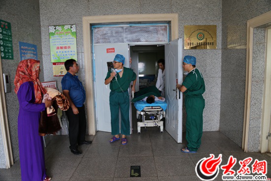 當(dāng)?shù)蒯t(yī)院醫(yī)護(hù)人員與山東醫(yī)療專家一起進(jìn)行手術(shù)。