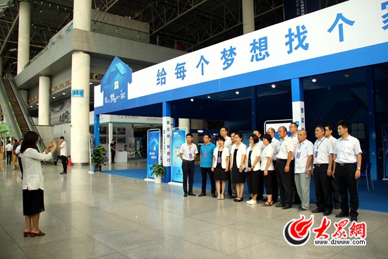 展會(huì)開幕前,建設(shè)銀行山東省分行參展員工在展位前留影