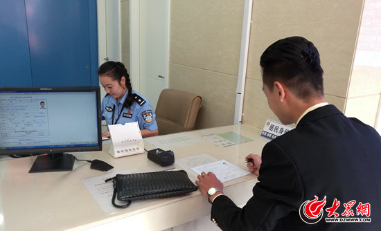 9月26日上午,歷城區(qū)公安分局戶政科民警正在為一位符合人像照片復(fù)用條件的市民補(bǔ)辦身份證。