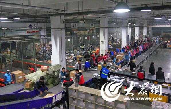 圓通濟(jì)南轉(zhuǎn)運(yùn)中心操作大廳內(nèi)的員工們正忙得熱火朝天。