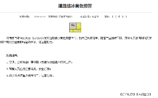 濟(jì)南發(fā)道路結(jié)冰黃色預(yù)警