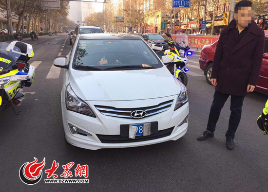 11月25日早晨8:40左右,正在大緯二路巡邏的市中交警中隊民警發(fā)現(xiàn),車流里有一輛車牌為魯**8***的白色現(xiàn)代轎車號牌兩角被對折,將車牌數(shù)字中只能看清一個數(shù)字“8”,其它均被折疊遮擋。民警見這輛車的前后車牌均被折卷,明顯是故意所為,隨即將該車攔停檢查。