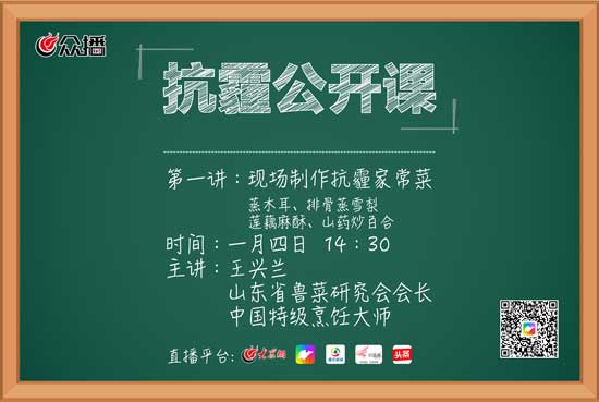 1月4日下午2點半,大眾網“眾播”首期“抗霾公開課”開播了,教你幾道“抗霾菜”。
