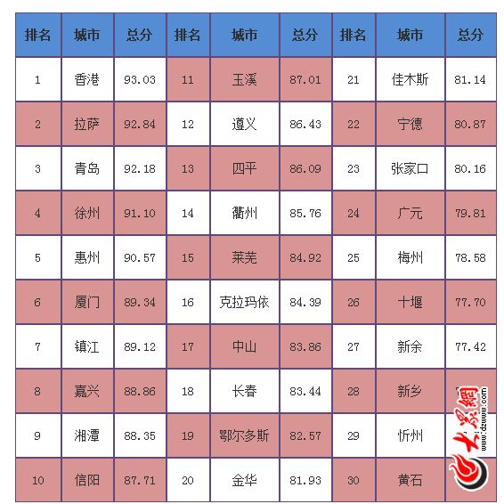 大眾網1月6日訊近日,中國城市競爭力研究會在港發布2016中國最安全城市排行榜,最安全的前十城市分別是香港、拉薩、青島、徐州、惠州、廈門、鎮江、嘉興、湘潭和信陽。