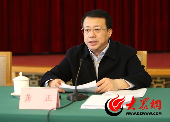 山東省委副書記、省扶貧開發(fā)領(lǐng)導(dǎo)小組副組長龔正出席會議并講話(記者 王宗陽攝)