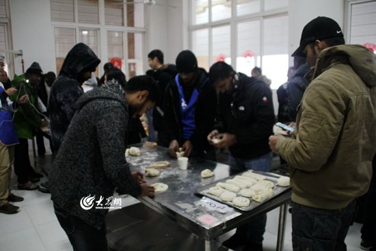 就在記者采訪的時(shí)候,饅頭制作間進(jìn)來(lái)一群特殊的客人——來(lái)自20多個(gè)亞非國(guó)家的外國(guó)朋友,他們跟著面點(diǎn)師們學(xué)做面塑!拔液芟矚g中國(guó),喜歡中國(guó)文化和中國(guó)的美食,今天想學(xué)學(xué)怎么做饅頭!币晃煌鈬(guó)友人一邊說(shuō),一邊拿起剛做好面塑展示給大眾網(wǎng)記者看。揉面、切面、捏花樣……在老師的引導(dǎo)下,他們做出來(lái)的面塑一點(diǎn)也不含糊。