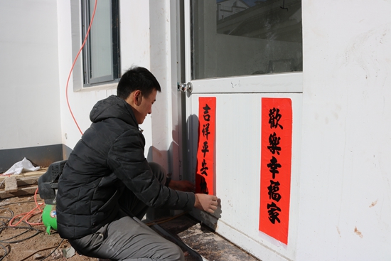 董瑞鵬在貼春聯,希望明年日子紅紅火火