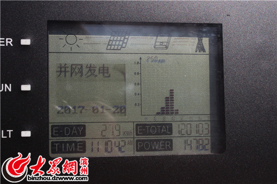 為落實好項目,楊玉奎帶領村干部先后到陽信縣西呂村、濟南等地考察。定下項目說干就干,楊玉奎從濟南某公司邀請到技術人員來村實地規劃,最終選擇在集貿市場大棚上安裝發電板。從2016年7月28日項目投產,到2017年1月20日上午,累計電量已經達到12010.3度。