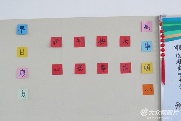 為讓住院患者感受到“年”的氣息,醫護人員對病房餐廳進行了簡單裝飾,把患者寫下的新年愿望貼到“許愿墻”上。護士們和患者們一起做手工、下跳棋、玩撲克。