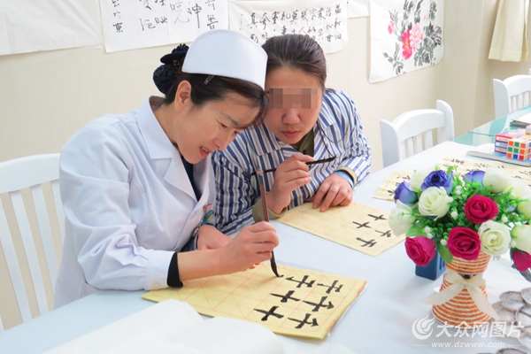 做完手工之后,部分患者又來到棋牌書畫治療室,開始練字、畫畫。李清華說:“做手工、練習書畫,可以提高患者的認知功能和社交技能,為患者社會功能的恢復,早日回歸社會奠定基礎!