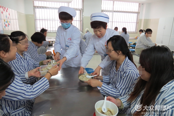 晚餐,護士們為每位患者分發了餃子,并和患者聊起了家長里短。