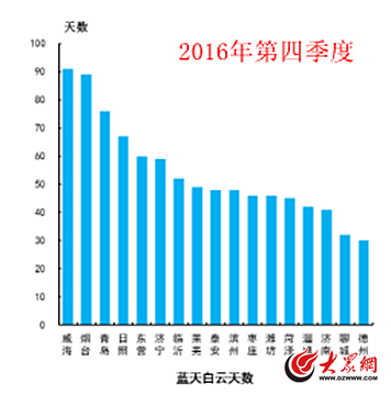 2016年山東“藍繁”天數增加34天,“氣質”同比改善9.7%