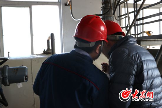 淄博熱力有限公司生產處副處長范新正在檢查檢測點的情況