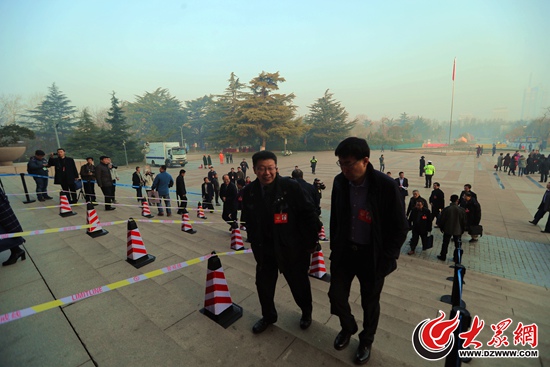 山東省政協十一屆五次會議即將開幕。8時20分起,省政協委員陸續抵達山東會堂,開始入場。